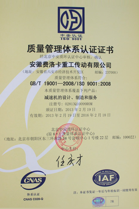 質(zhì)量管理體系認(rèn)證證書(shū)